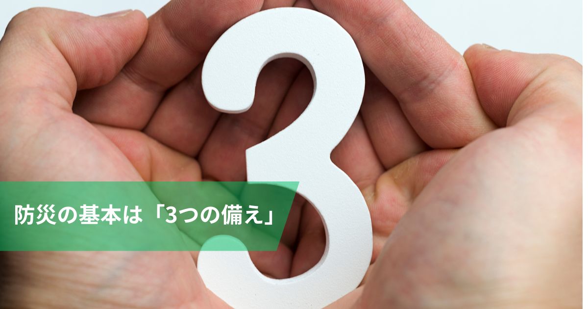 つまり、「落ち着いてから」ではなく、新生活が始まるタイミングで準備しておくことが重要なのです。防災の基本は「3つの備え」